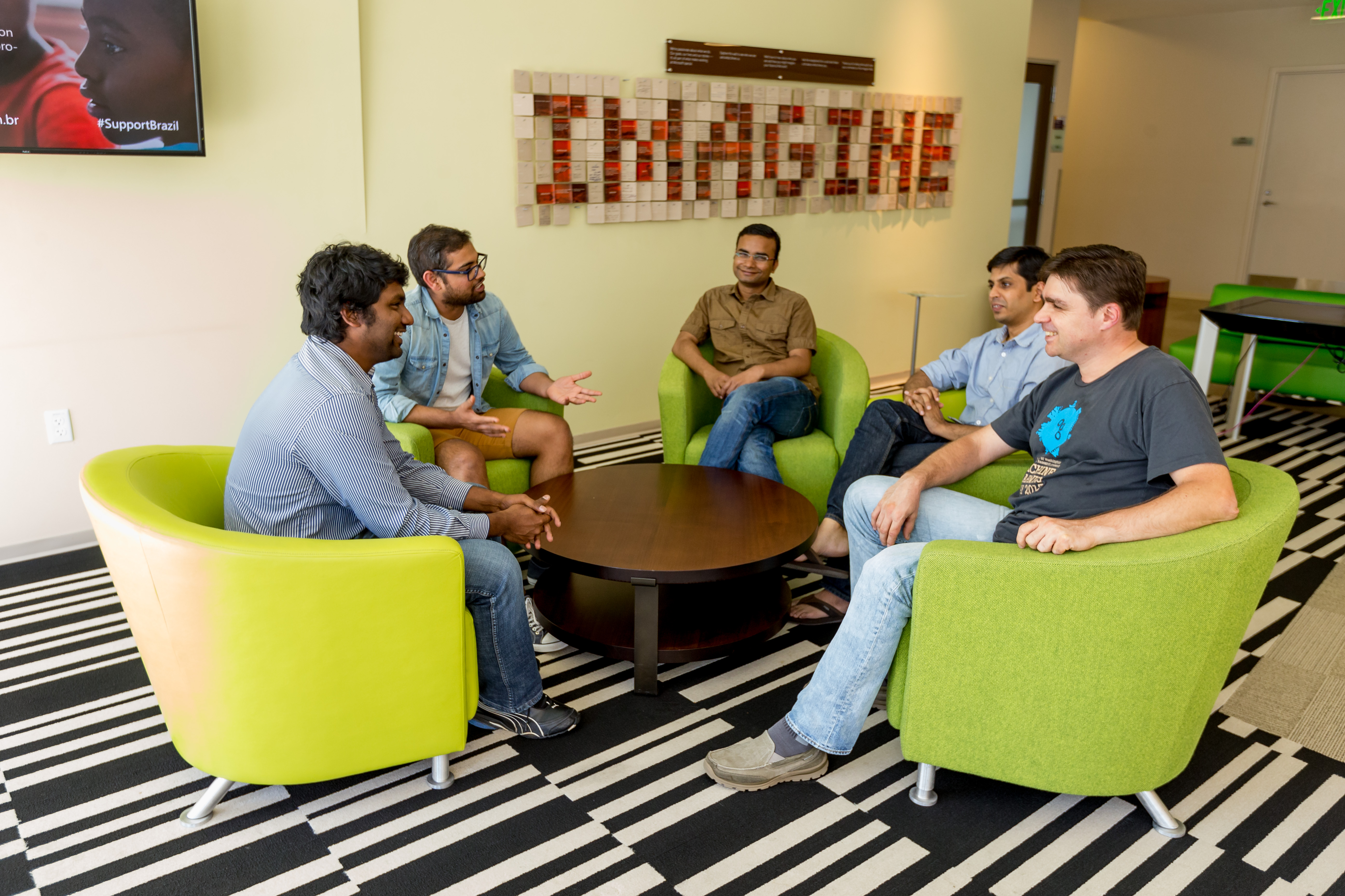 Lead image: Team InstaFact is (from left) Srivatsava Daruru, Rohit Paravastu, Silviu Cucerzan, Rajeev Kumar and Deepak Zambre. (Photo by Scott Eklund/Red Box Pictures).