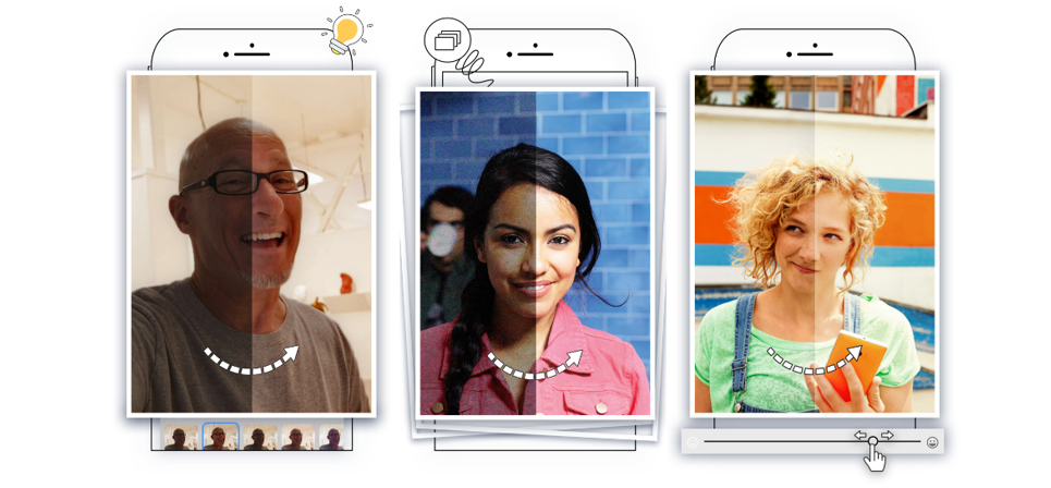 The app’s outstanding noise reduction feature uses “Burst Images De-noising”, a technique that intelligently judges light conditions, automatically enables burst shots and leverages multiple frames for better de-noising, thus improving image quality. This technology has also been used in the popular Blink app.