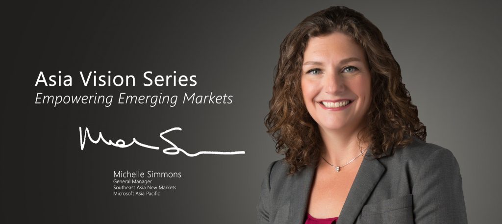 In the Asia Vision Series features, we explore key industry trends and issues with our subject matter experts and visionaries. In part 2 of 3, Michelle Simmons – General Manager, Southeast Asia New Markets, Microsoft Asia Pacific – says building digital know-how in emerging countries is critical for economic and business transformation. She also looks at how today’s students and workers are gaining new skills to compete in the future.