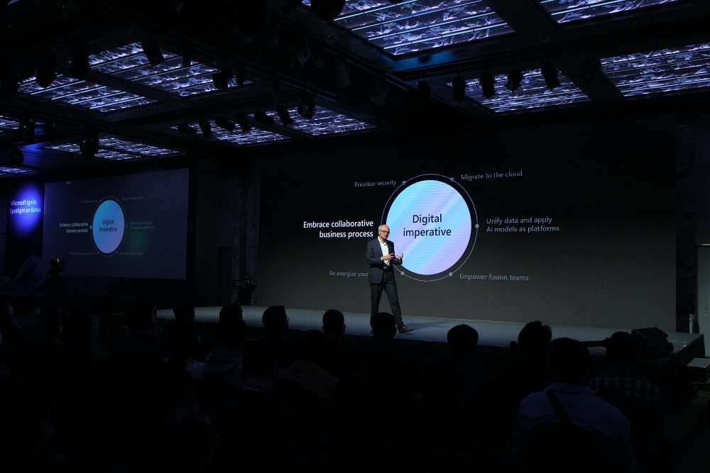 Satya Nadella, Microsoft Chairman and Chief Executive Officer, speaking to Korean developers and business leaders at ‘Microsoft Ignite Spotlight on Korea’ held on 15th of November, in Seoul, Korea.