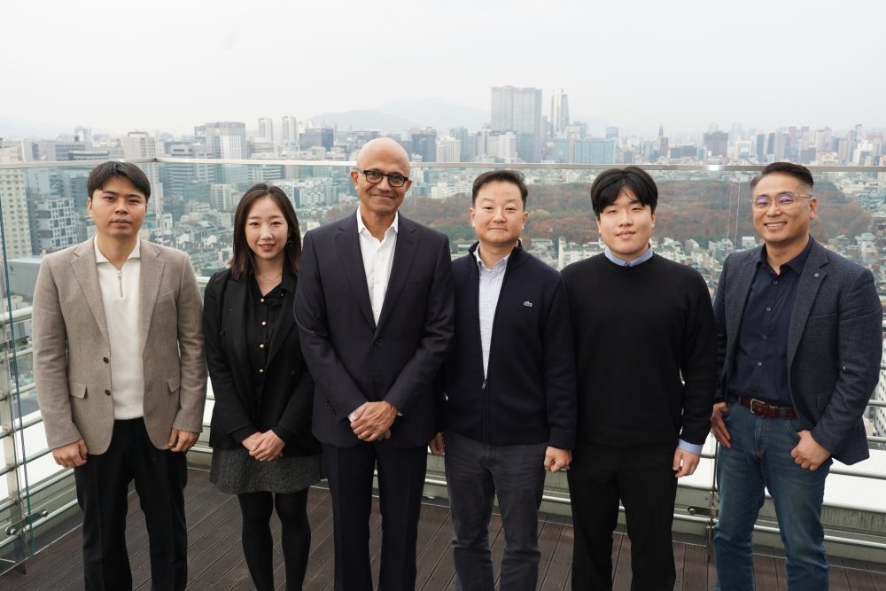 Satya Nadella, Microsoft Chairman and Chief Executive Officer, taking a photo with Korean developers during his visit to Seoul, Korea on 15th of November.