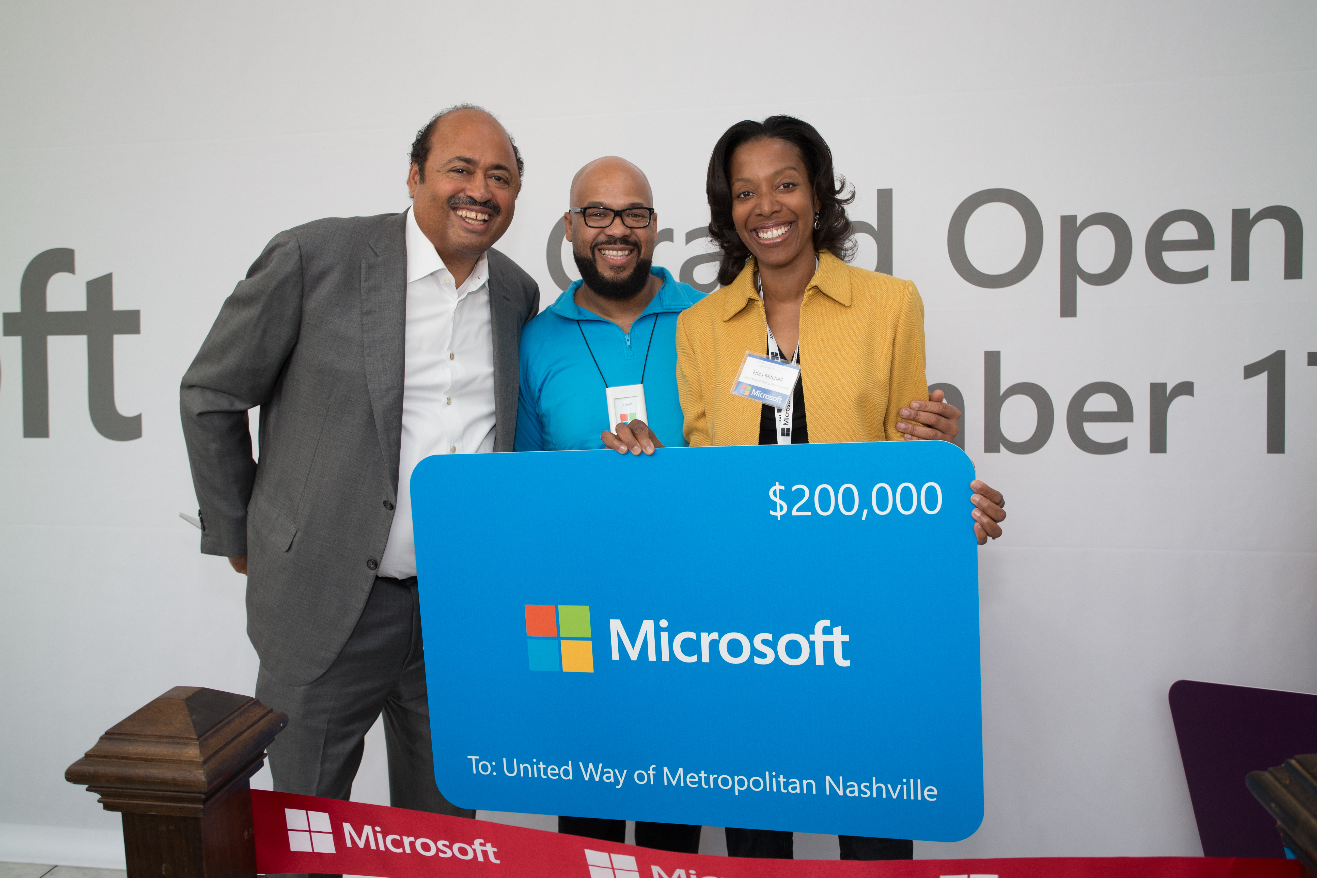 Local community organizations accepted more than $1 million in technology grants from Microsoft Store at The Mall at Green Hills during the grand opening ceremony in Nashville, Tenn., on Nov. 17, 2016.