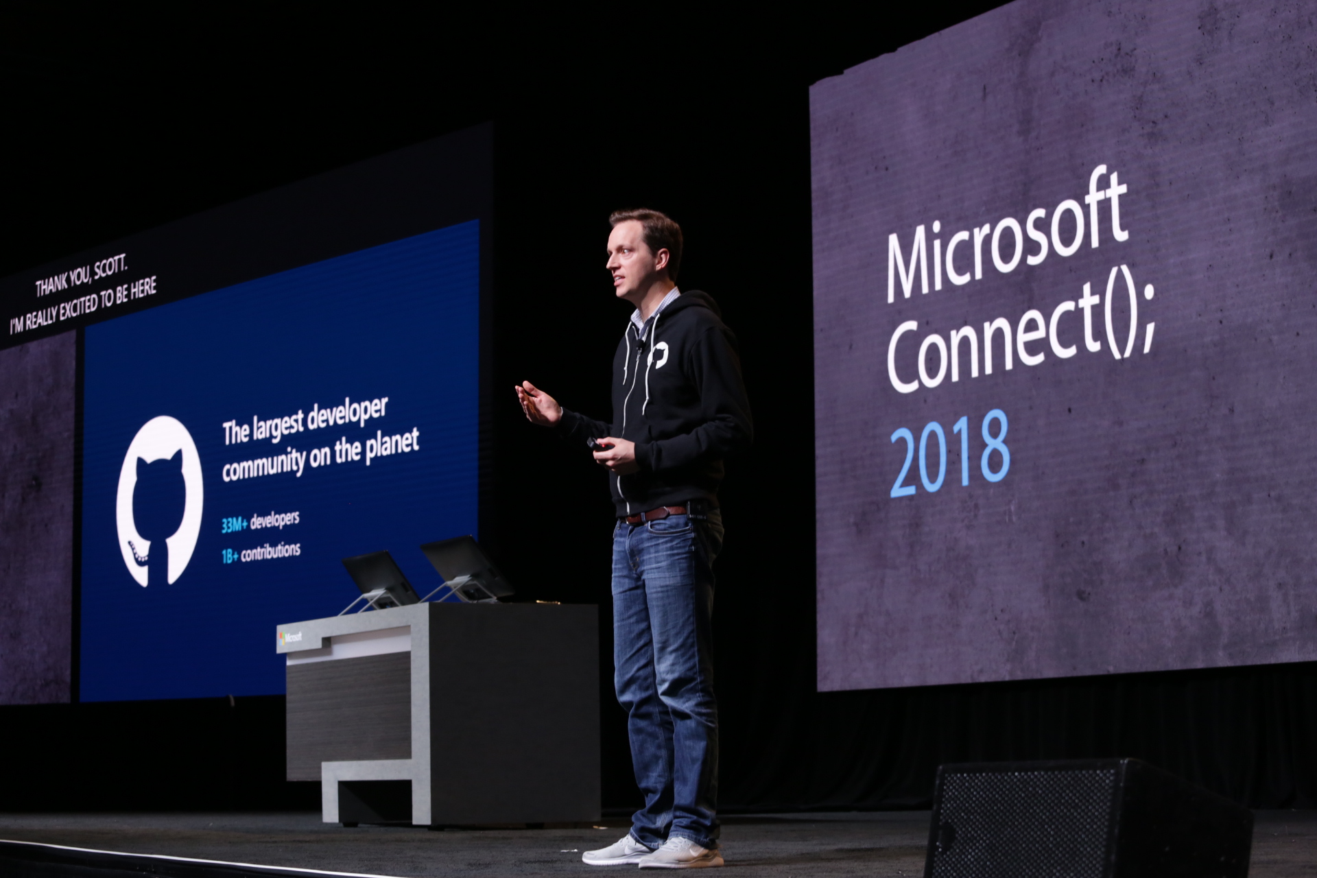 GitHub CEO Nat Friedman presents GitHub momentum statistics at Microsoft Connect(); 2018