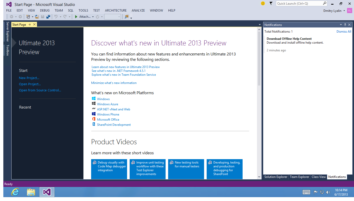 Visual Studio 2013 Preview introduces a connected IDE experience, enabling developers to move from machine to machine.