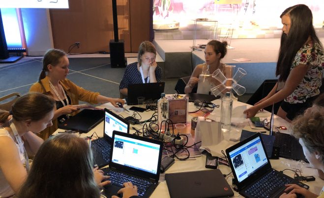 Dívky dále programovaly vlastní kód v jazyku MakeCode, kterým oživily svůj Micro:bit tak, aby zobrazoval texty, blikal, reagoval na náklon či stisknutí tlačítka. Naprogramovaný Micro:bit propojily i s běžnými předměty jako papír, kelímky nebo krabičky a vytvořily tak modely aut, květů, robotů a dalších objektů. Malé zařízení, díky kterému viděly skutečné výsledky toho, co naprogramovaly, si nakonec mohly odnést domů.