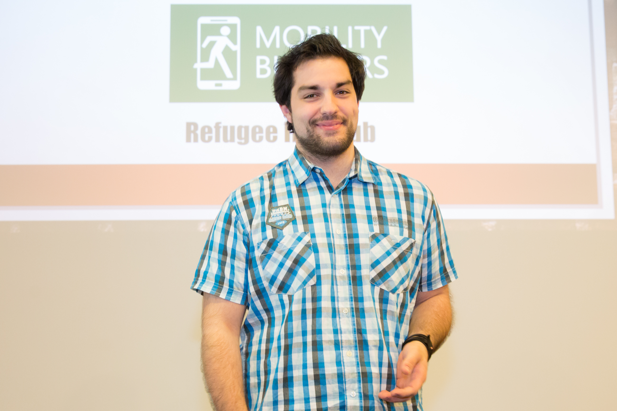 Der 25jährige Dolmetscher der Flüchtlingshilfe-Organisation „Train of Hope“ beteiligte sich gleich an mehreren Hackathon-Projekten (RNW – Refugee Network, refugee.media).