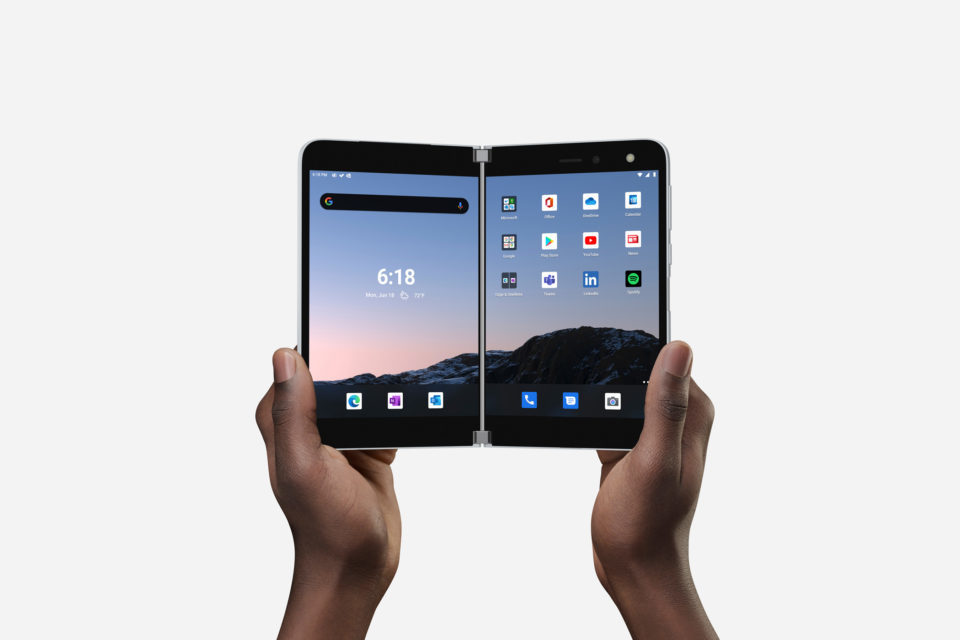 Surface Duo kommt mit zwei PixelSense-Fusion-Displays, die durch ein 360-Grad-Scharnier miteinander verbunden sind. Die Bildschirme können einzeln oder zusammen als 8,1-Zoll-Screen verwendet werden. Im Querformat können AnwenderInnen sich beispielsweise auf dem einen Display die TeilnehmerInnen einer Teams-Besprechung anzeigen lassen, während sie auf dem anderen die präsentierten PowerPoint-Folien sehen. Zum Abspielen von Videos lässt sich das Gerät im Zelt-Modus aufstellen. Das Hochformat bietet sich an, um durch Fotos oder Webseiten zu scrollen. Mit der Your Phone App auf Surface Duo können AnwenderInnen von ihrem Windows 10-PC aus Anrufe entgegennehmen, Benachrichtigungen abrufen, Fotos ansehen und sogar Inhalte per Copy & Paste zwischen ihrem Surface Duo und PC übertragen.
