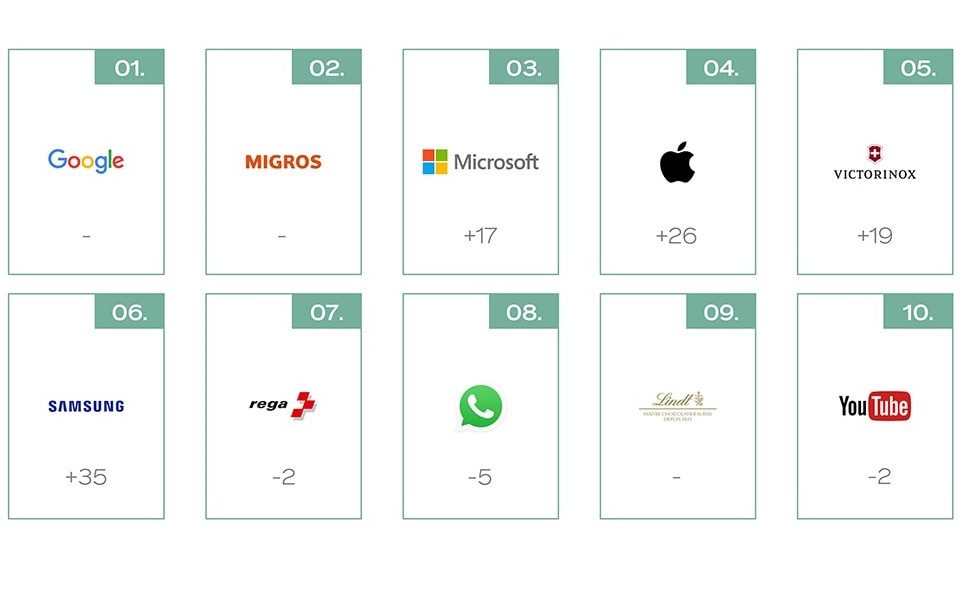 The Brand Asset Valuator shows which brands are the most respected in Switzerland: Microsoft is among the top 3 strongest brands in Switzerland for the first time, Werbewoche reports.