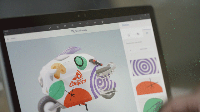 Mit dem Mixed Reality Viewer könnt ihr ganz einfach 3D-Objekte anschauen – entweder aus der Community bei Remix3D.com oder eure eigenen, mit Paint 3D erstellten Werke. Noch besser: Der Viewer bettet die dreidimensionalen Objekte in eine von der Kamera eures Tablets oder Notebooks aufgenommene Umgebung ein. Ein Headset oder andere spezielle Hardware braucht ihr dafür nicht.