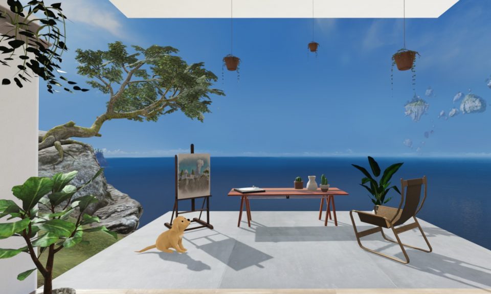 Via Teleportation kann man sich zentral vor einer App positionieren. Hierfür drückt man den Ministick nach vorn, richtet den Controller auf die gewünschte App aus und lässt den Ministick los, um genau vor dem App-Fenster zu landen.