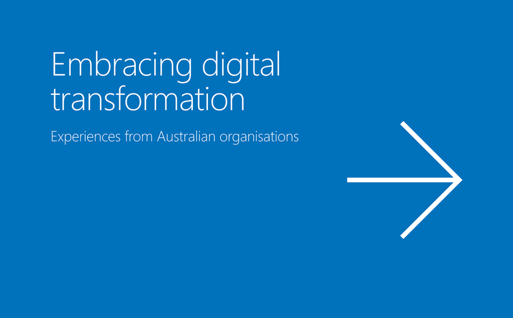 To help answer this question, Microsoft has just released Embracing digital transformation: Experiences from Australian organisations. This new report features in-depth interviews with leaders from 30 Australian business, government and non-profit organisations. These include Aussie, the Commonwealth Bank, Cricket Australia, the Department of Immigration and Border Protection, Domino’s Pizza, Macquarie Group, Pact Group and Webjet.