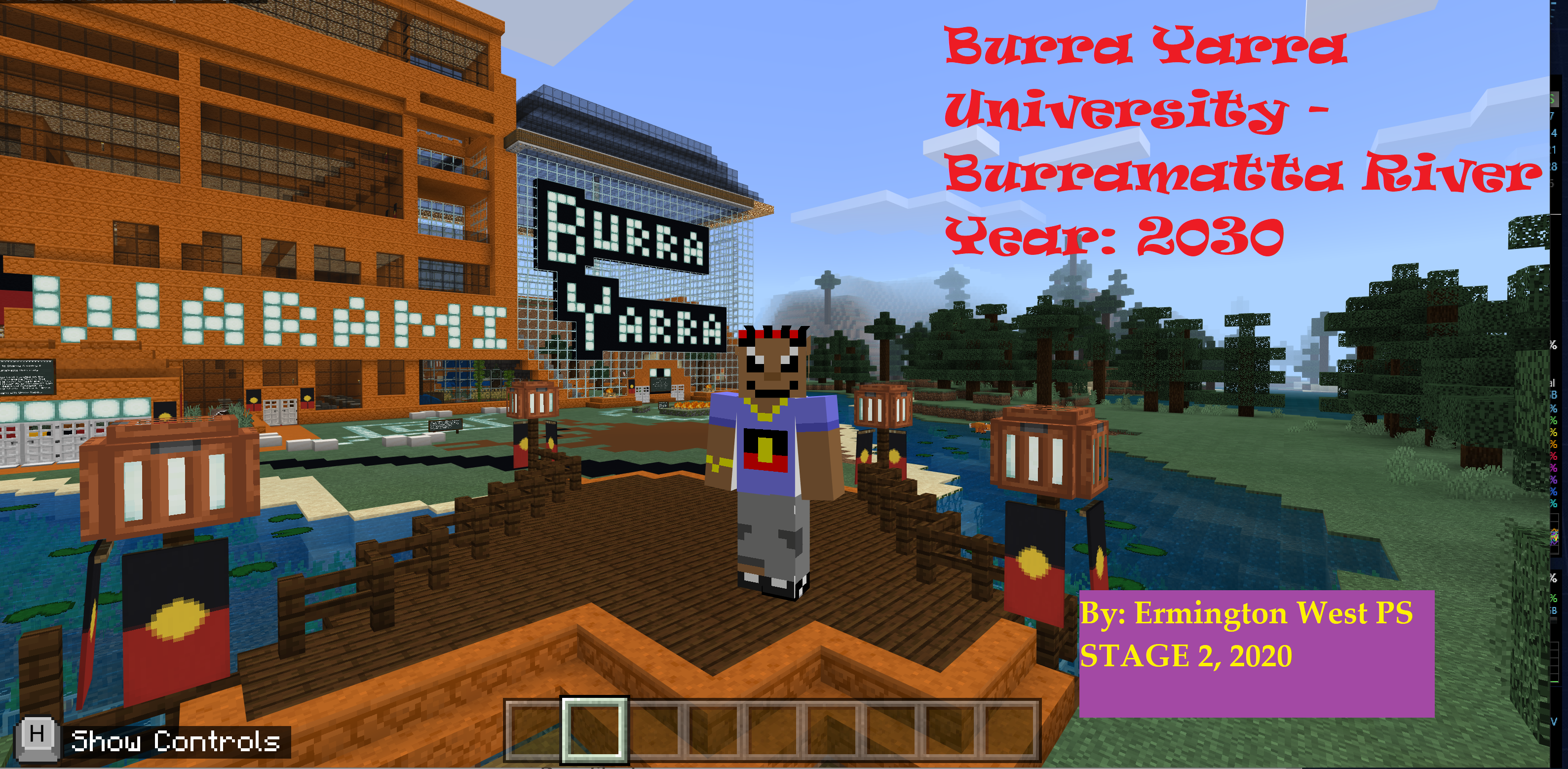 Supported by community Elders, teachers, and experts in Indigenous education, students were then encouraged to look forward (Always will be), and using Microsoft Paint 3D and Minecraft: Education Edition, they were asked to create mixed reality characters and Minecraft worlds, in response to the question: ‘How might we build sustainable schools, cities, towns or communities in 2030 using Indigenous science, technology, engineering, arts and maths?’