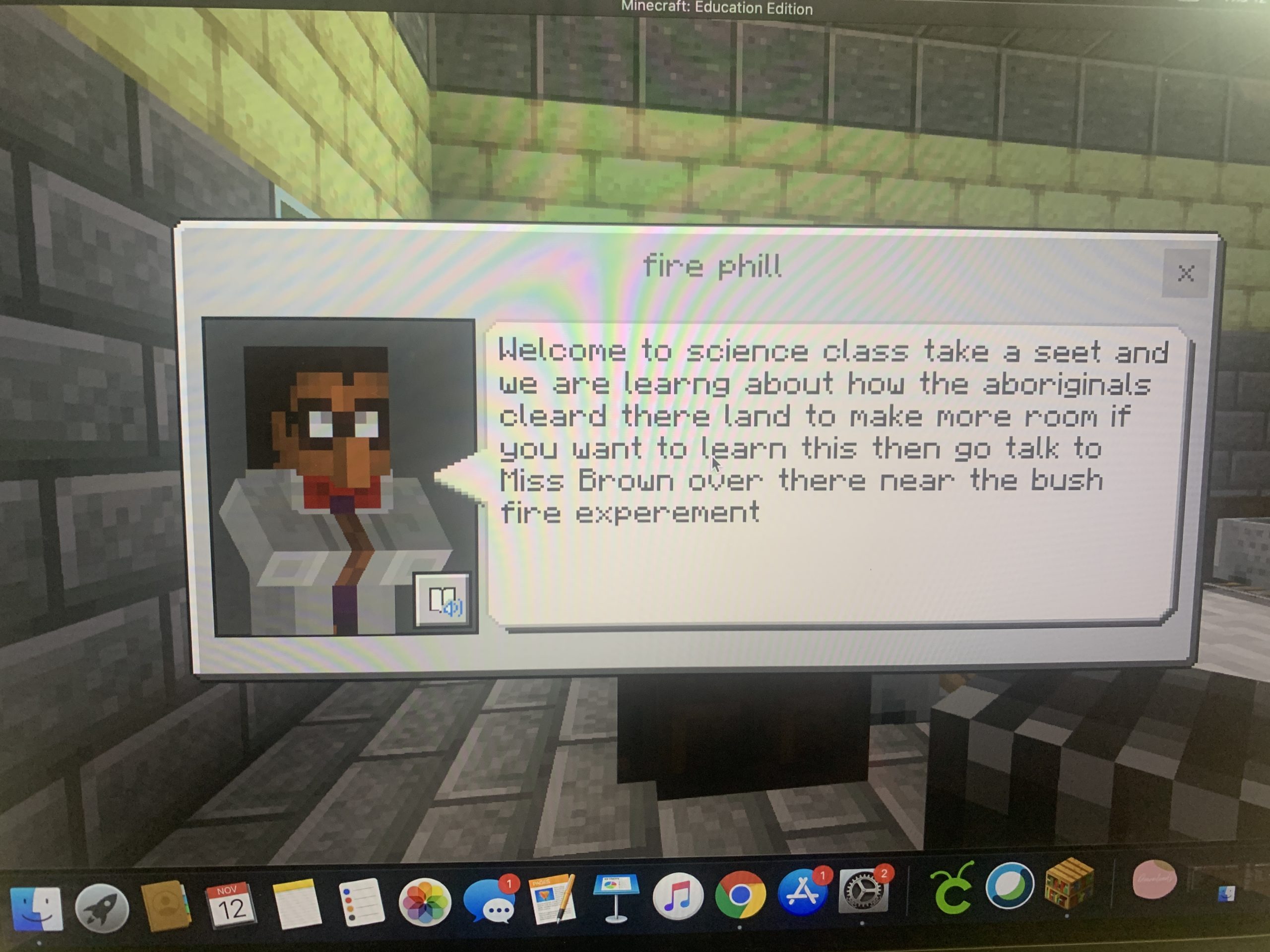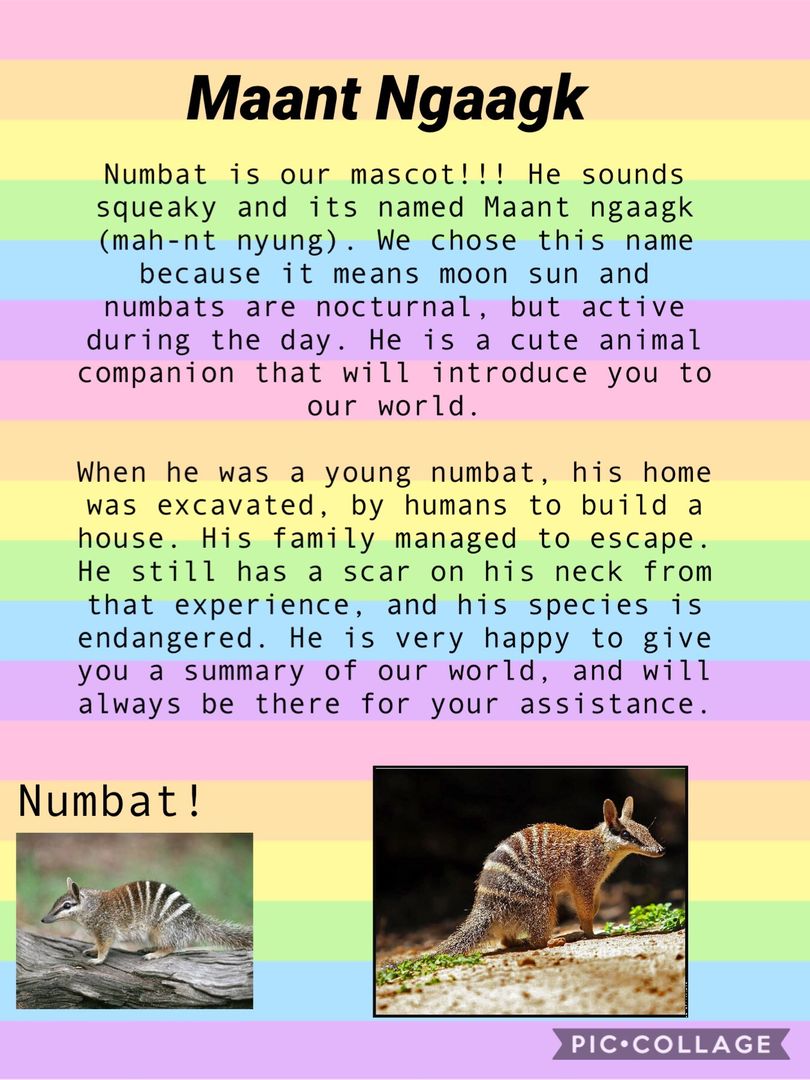 Students at St Peter’s Primary School (NSW) designed and animated a numbat, which they named Maant Ngaagk (moon sun), that narrated the Minecraft world they had designed, explaining to visitors features of the landscape and the Indigenous knowledge that students had learned.