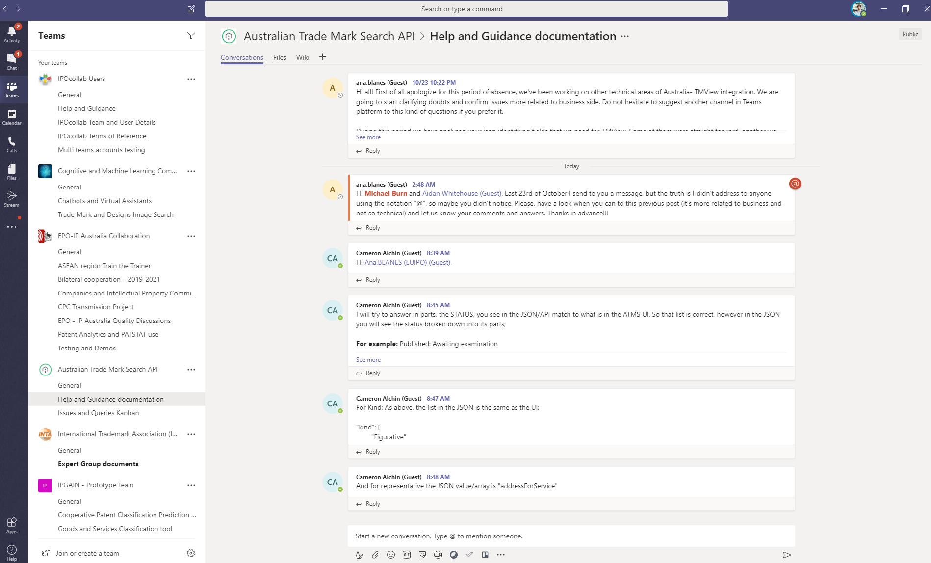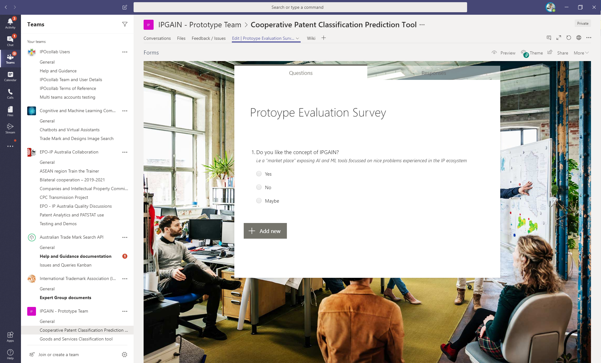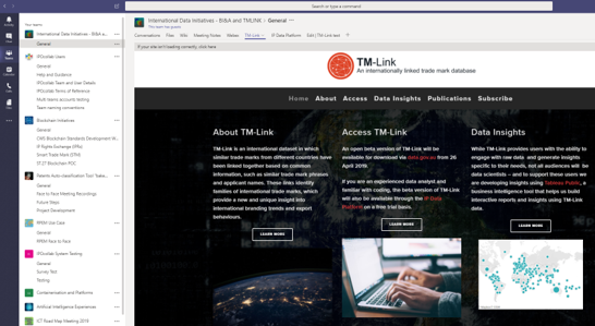 With Microsoft Teams as the foundation, IP Australia created a platform called IPOcollab which is currently being trialled with 15 IP agencies around the world. IPOcollab has been set up as a subdomain of IP Australia to ensure there is no blurring between the internationally accessible Teams platform, and the Teams platform that IP Australia is planning to deploy for its own internal use.