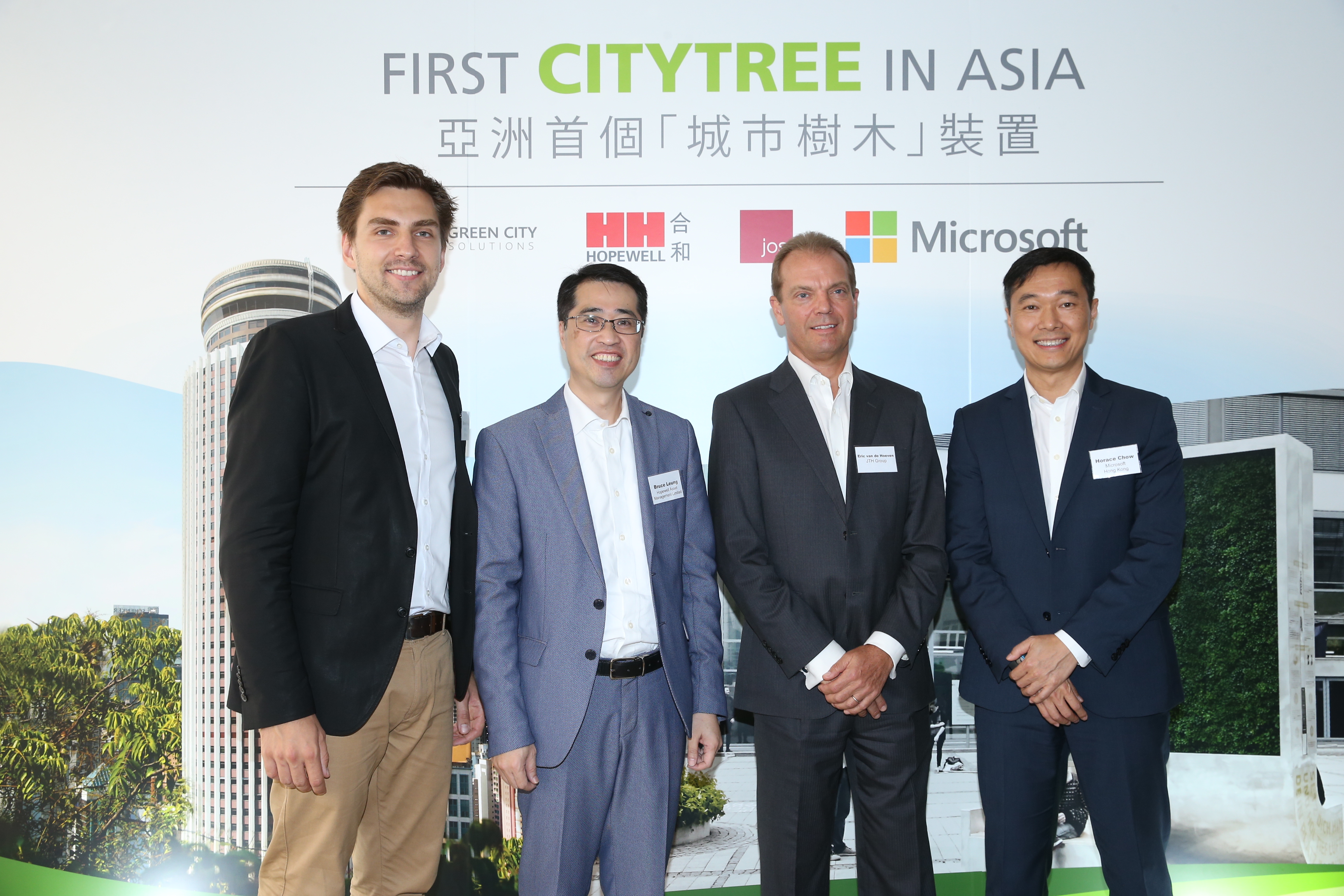 Hong Kong – 8 July, 2016 – Hopewell Real Estate Agency Limited, JOS and Microsoft Hong Kong have installed Asia’s first CityTree located outside Hopewell Centre in Wan Chai, Hong Kong. Working together, the companies are showing the way with smart and sustainable urban solutions. The patented high-tech green installation will benefit the Hong Kong community with reduced roadside pollution and heightened environmental awareness.