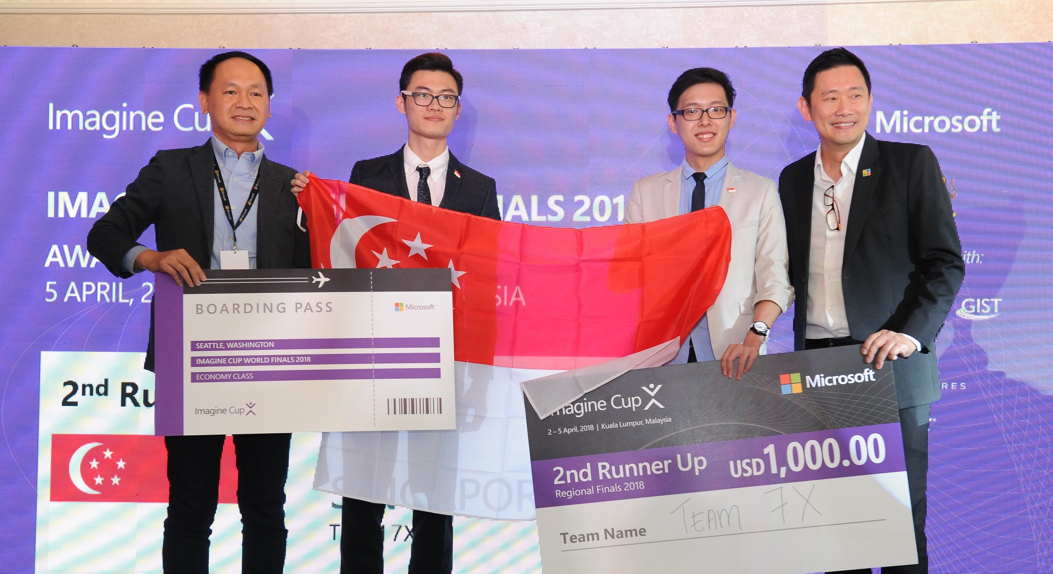 KUALA LUMPUR, MALAYSIA, 5 April 2018 – Following two days of intense competition at the Microsoft Imagine Cup 2018 Asia Pacific Finals, Team 7x from Singapore has been crowned second runner-up in the premier student technology competition today, coming in behind Team PINE from Malaysia in first place and Team BeeConnex from Thailand in second place.