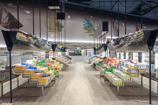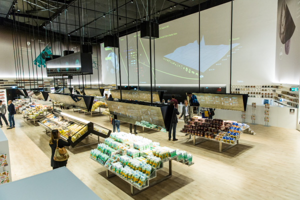 Coop Italia, “supermercado del futuro” diseñado por Carlo Ratti, ha obtenido muy buenas críticas gracias a un diseño digital que creó una experiencia más humana al utilizar una gama de tecnología fuera de lo común. El concepto, que debutó en Expo Milan el año pasado y será mostrado en la conferencia de Envision de Microsoft esta semana, remplaza las típicas filas de estantes elevados de las tiendas de comestibles con un diseño ventilado, que incluye pantallas informativas, suspendidas a la altura de los ojos para un alcance más fácil hacia los productos.