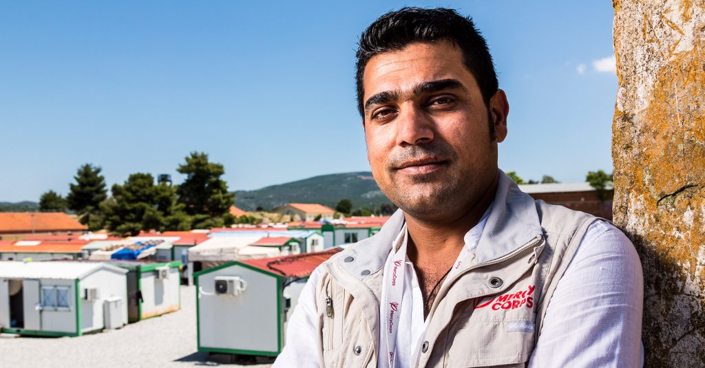 Había aprendido un poco de inglés en la escuela para refugiados a la que asistió en Pakistán, y eso, además de otros idiomas que aprendió durante su viaje, le permitió conseguir empleo como intérprete en una organización humanitaria. Hizo amigos griegos y Mercy Corps lo contrató como director de campo para ayudar a las personas que vivían en los campamentos de refugiados a obtener los servicios que necesitaban para sobrevivir.