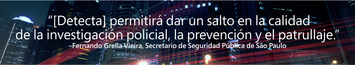 El Gobierno de São Paulo implementó Detecta, sistema inteligente de monitoreo de crímenes, basado en tecnología de Big Data e inteligencia de negocios, desarrollado por Microsoft junto con la Ciudad de Nueva York, donde se usa para antiterrorismo.