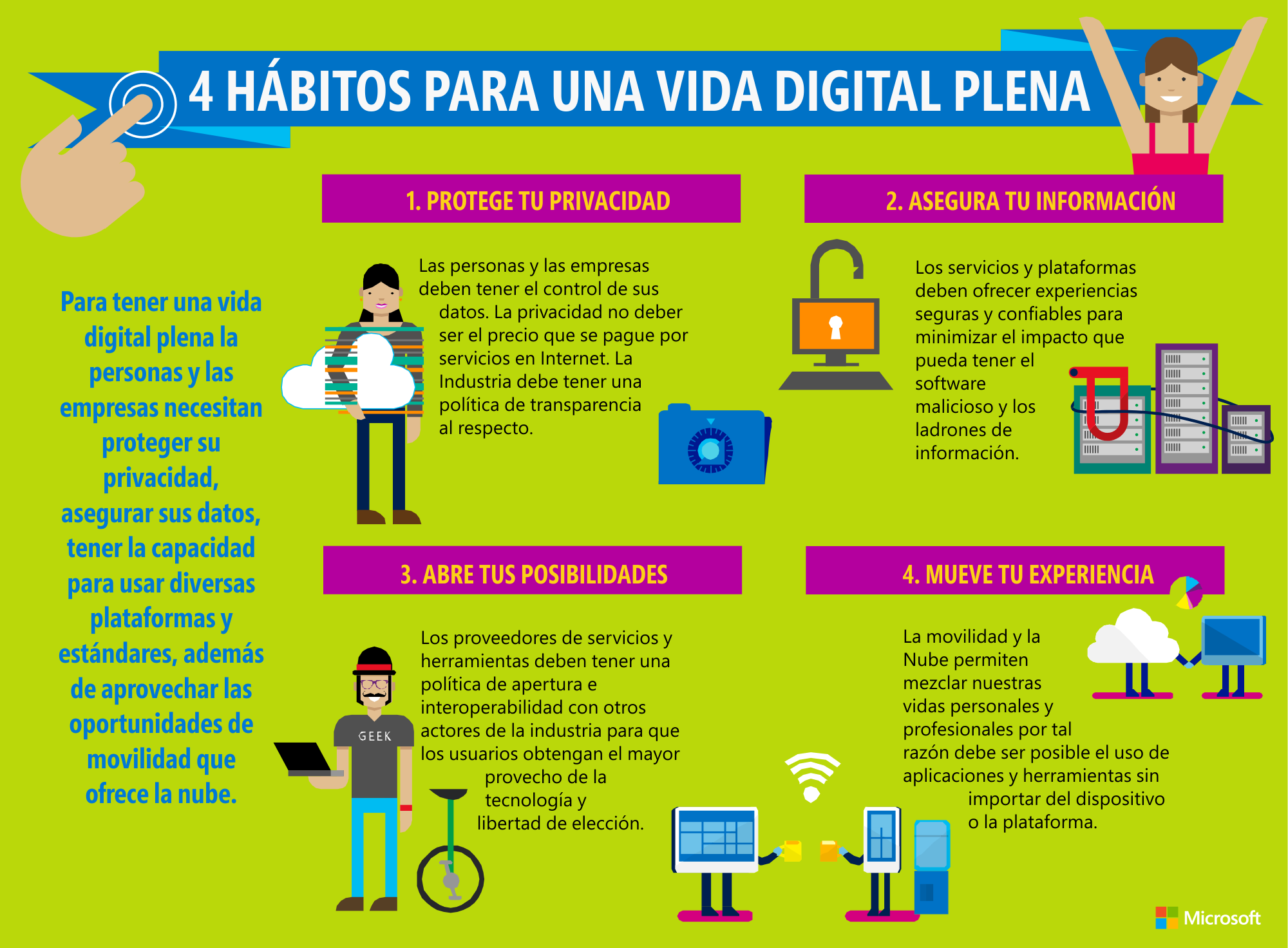La privacidad, la seguridad, la apertura y la movilidad deben ser hábitos que integremos a nuestra vida digital. Depende de nosotros tener el control de nuestra vida digital. Invitamos a la industria, a los gobiernos y a las organizaciones a unirse a la promoción de estos hábitos y a actuar en consecuencia.