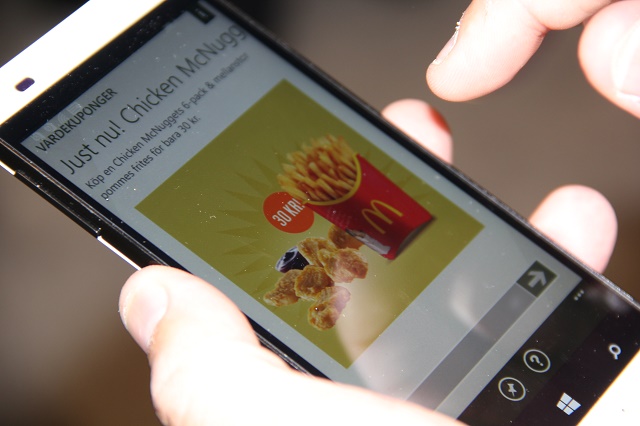 Cuando los clientes abren la aplicación de McDonald’s obtienen contenido personalizado de acuerdo a su ubicación, la hora del día, el clima, sus hábitos de compra y la manera en que responden a las promociones. Por ejemplo, en una tarde soleada de verano, un cliente que va caminando cerca de una tienda podría recibir una oferta de helado gratis en la compra de un sándwich. En una mañana gris y fría, la oferta podría ser de café o de alguno de los productos de desayuno favoritos del cliente. Si el cliente va de prisa, la oferta podría indicar los restaurantes que cuentan con ventanilla de servicio en automóvil. Como resultado de implementar la plataforma VMob, McDonald’s en Holanda ha tenido un incremento de 700% en el canje de ofertas, y los clientes que utilizan la aplicación están volviendo a las tiendas dos veces más seguido y gastando 47% más.