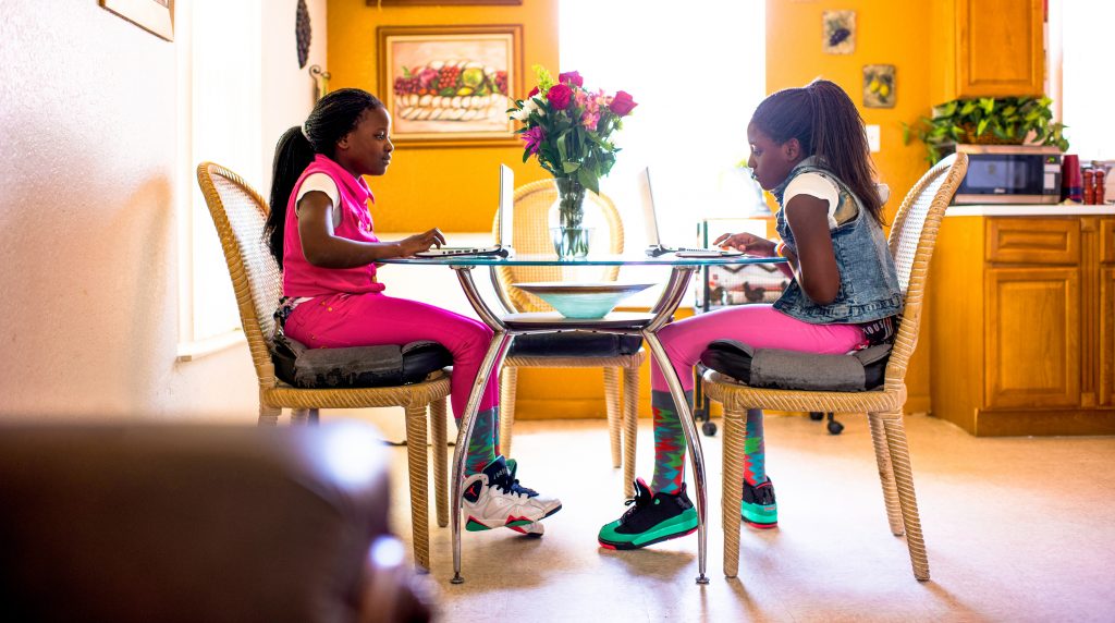 Lead photo: Iesha (left) and Tyesha Heard do their homework on their laptops. Photos by Ivan Nava