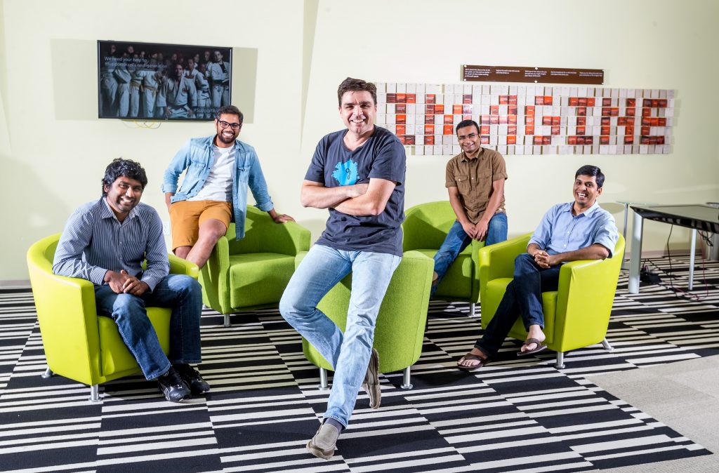 Lead image: Team InstaFact is (from left) Srivatsava Daruru, Rohit Paravastu, Silviu Cucerzan, Rajeev Kumar and Deepak Zambre. (Photo by Scott Eklund/Red Box Pictures).