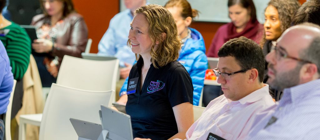 The workshop also had its share of fun. Participants played a guessing game on Skype with students in Iowa and later roamed blocky buildings and green fields in “Minecraft.” The game is a great classroom tool that helped 5th graders in Surry County Schools learn about biomes and ecology, said Lucas Gillispie, director of academics and digital learning for the North Carolina school district.