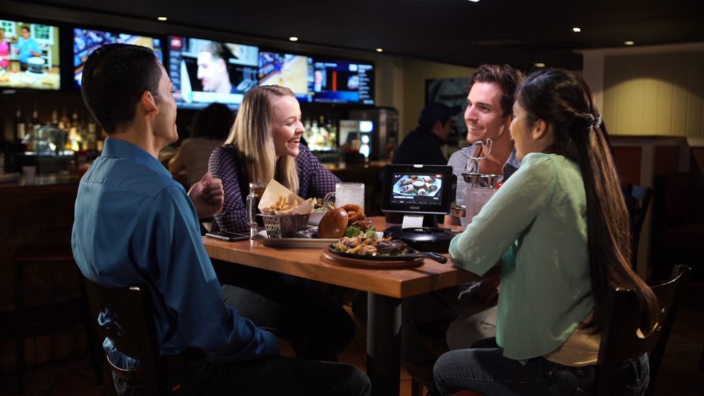 Guests enjoying a meal at Chili’s, with the Ziosk tablet on the table.