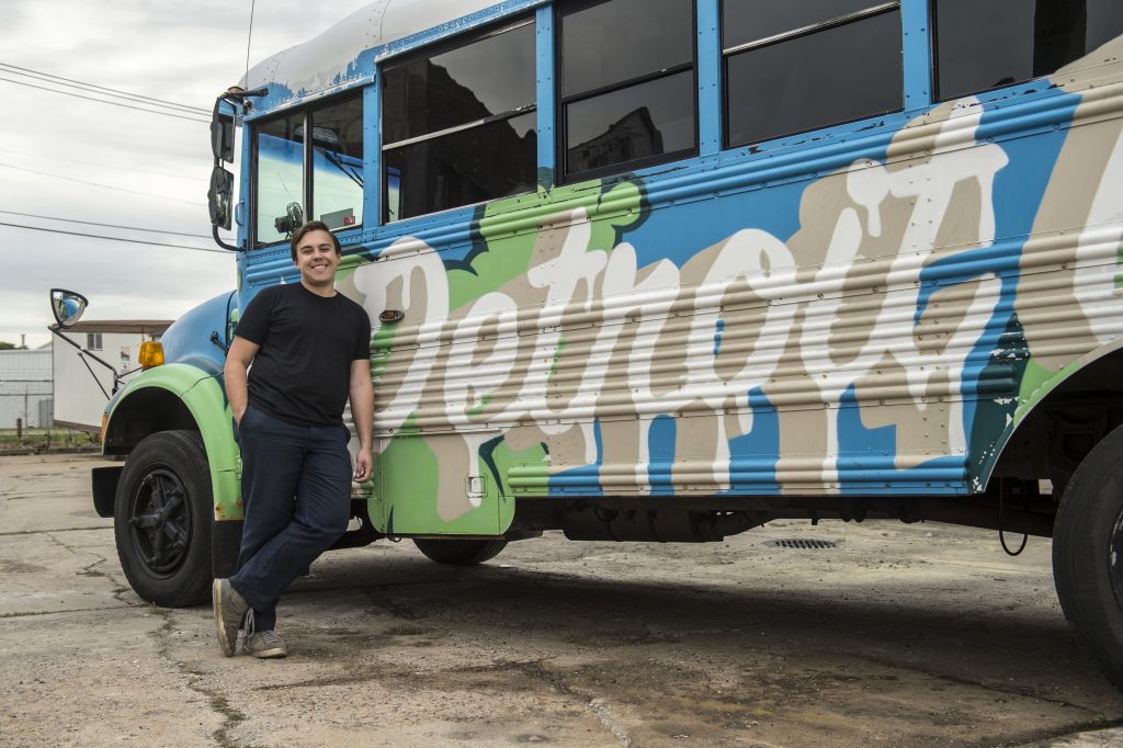 Lead photo: Andy Didorosi, owner and founder of The Detroit Bus Company, stands next to one of his refurbished school buses. Photo: Ami Vitale.