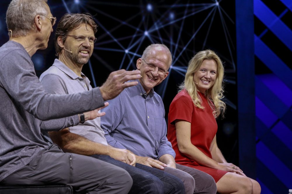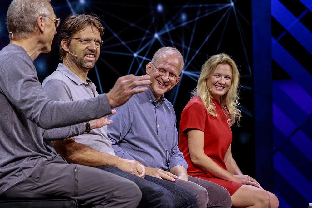 Michael Freedman, Microsoft technical fellow, Station Q; Leo Kouwenhoven, Charlie Marcus, Microsoft principal researchers, Qfab; and Krysta Svore, Microsoft principal researcher, QuArC Software, at Microsoft Ignite 2017.