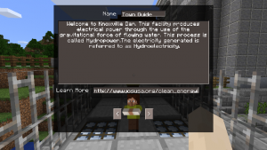Minecraft を利用する教師は、生徒の案内係となる NPC を設定することが可能です。この NPC は、ワールド内で課題達成のためのヒントや手順を与えたりする他、ブラウザを開いて Web ページを参照させることも可能です。