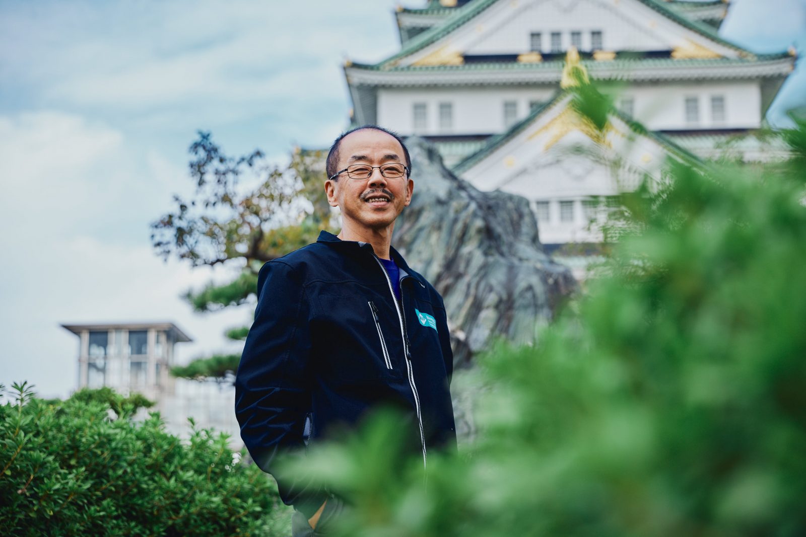 ※Hero 画像: 大阪城の前、笑顔で立つ稲葉先生