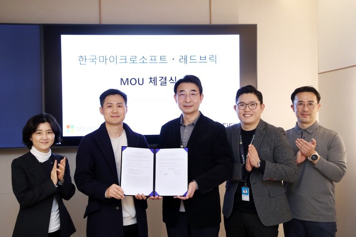 한국마이크로소프트 본사에서 진행된 협약식에는 레드브릭 이광용 레드브릭 총괄이사와 한국마이크로소프트 이상현 공공 사업부문장 등 관계자들이 참석해 업무 협약서를 교환했다.