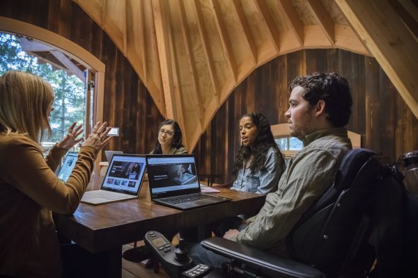 트리하우스는 마이크로소프트 레드먼드 캠퍼스의 건물들과 연결되어 있으며, 마이크로소프트 직원이라면 누구든 이 공간을 사용할 수 있습니다. 이 공간에서 직원들은 자연이 창의력, 집중력 그리고 행복에 미치는 영향을 체험하고 있습니다.