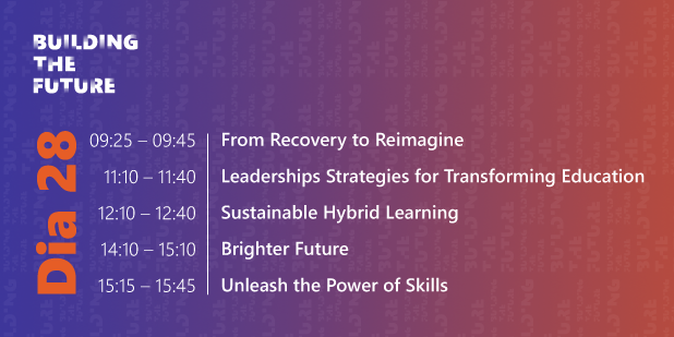 09:25 | EMPOWERING LEARNING ANYTIME, ANYWHERE | From Recovery to Reimagine | Anthony Salcito, VP da Worldwide Education da Microsoft que realçou: “Quando pensamos nesta nova quarta revolução digital que está a acontecer no mundo do trabalho e nas nossas vidas, a maneira como usamos dados e o conhecimento tornou-se determinante para a forma como o mundo avança, moldando o mercado de trabalho para o qual os vossos alunos se preparam”.