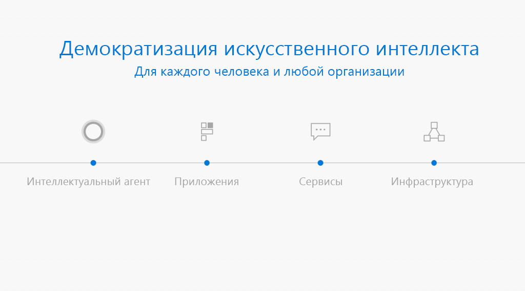 • Мы намерены предоставить доступ к возможностям искусственного интеллекта, которые заложены в наших собственных приложениях (когнитивные способности), разработчикам приложений во всем мире.