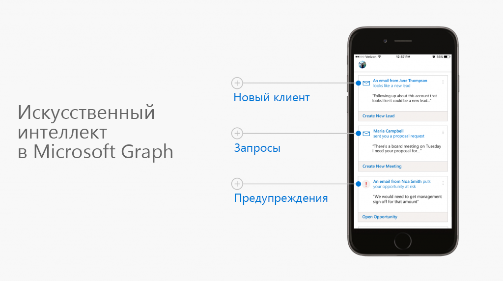 Мы намерены предоставить все эти возможности в виде набора API всем разработчикам, после чего каждый из них сможет использовать те же модули и структурные элементы, что и Microsoft при разработке Office, Cortana и Dynamics 365.