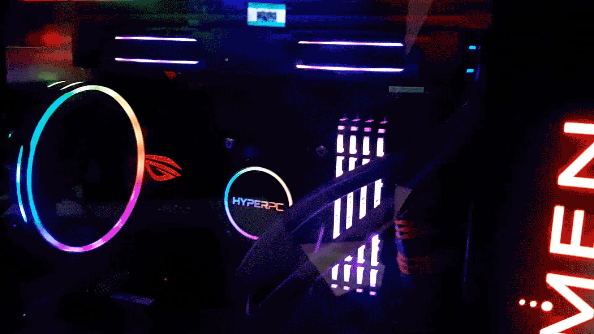Мы начали с того, что все коллеги хотели сфотографировать HYPERPC LUMEN и куда-нибудь выложить. Дизайн очень лаконичный, но привлекательный, а подсветка просто затягивает внутрь. Корпус изготовлен из алюминиево-магниевого сплава, боковины из прозрачного акрила (с одной стороны он закрашен, с другой затонирован, как стекло в автомобиле, и собственно становится нашим окном во внутренний мир геймерского устройства). Вообще в HYPERPC дизайну уделяют большое внимание, могут на заказ сделать просто уникальные вещи, но даже в базовой комплектации есть какие-то приятные вещи, например, стандартный шнур питания заменили на фирменный – его даже не нужно прятать, а наоборот стоит разложить на виду.