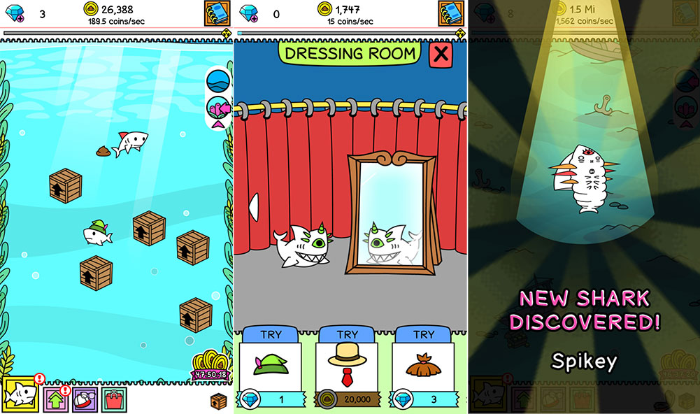 Примитивный бесплатный тайм-киллер для тех, кто плавится в жару или прячется от грозы под одеялом. По сути надо только кликать. На экране появляются маленькие ящики – из них акулята. Соединил две маленькие акулы – получил особь побольше. Мозг вообще не нужен. Сначала хочется бросить, но потом становится интересно: а что дальше? А там все акулы. Очень странно, но затягивает.