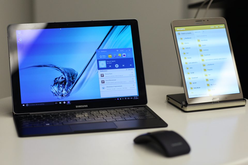 - Синхронизация с устройствами Samsung Galaxy на Android при помощи программы SideSync (работа с сообщениями и звонками прямо на экране планшета, запуск игр, дистанционное управление смартфоном).