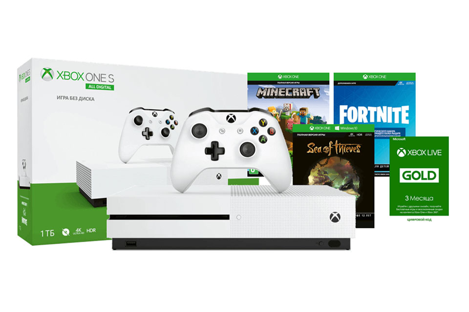 Семейство консолей Xbox One позволяет играть в лучшие игры прошлого, настоящего и будущего, обеспечивая доступ к библиотеке из более чем 1300 различных проектов. В это число входят и классические игры для предыдущих поколений Xbox, доступные по обратной совместимости. Обладатели Xbox One S All-Digital и Xbox One S могут наслаждаться фильмами в разрешении 4K, используя встроенный плеер Blu-ray 4K UHD и аудиосистему с поддержкой объемного звука Dolby Atmos, а также играть в многопользовательских режимах благодаря самой быстрой и надежной игровой сети Xbox Live.