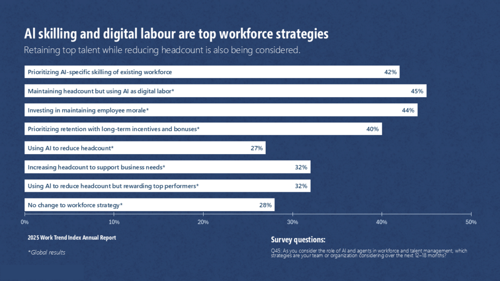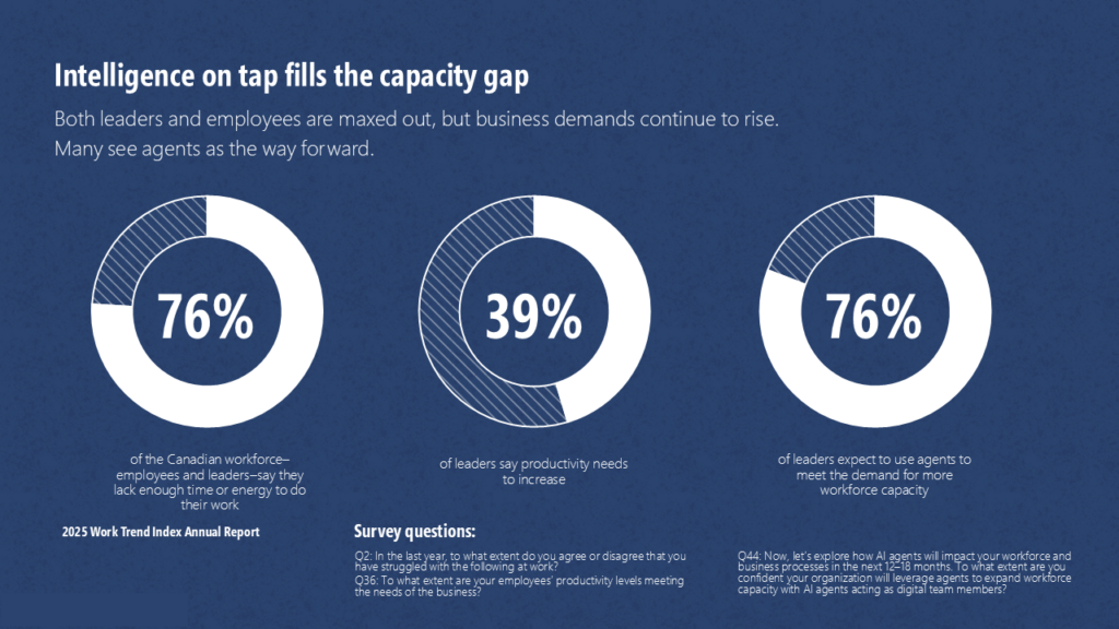 To help leaders and employees understand and prepare for the shift, Microsoft’s 2025 Work Trend Index analyzed survey data of 31,000 employees across 31 countries, LinkedIn hiring and labour market trends, and trillions of Microsoft 365 productivity signals.
