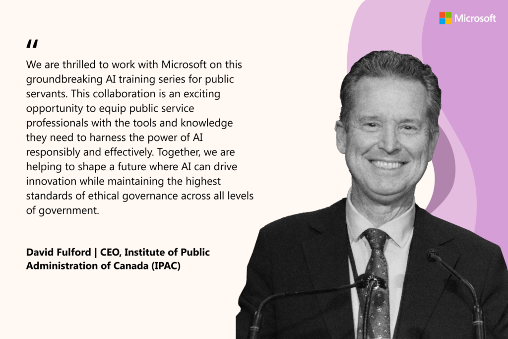 - Institute of Public Administration of Canada – In collaboration with Microsoft, the Institute of Public Administration of Canada (IPAC) will launch a free Generative AI skills training series, Navigating AI: A Practical Guide for Public Servants, tailored specifically for public servants across Canada and delivered by KPMG Skills Development Centre.