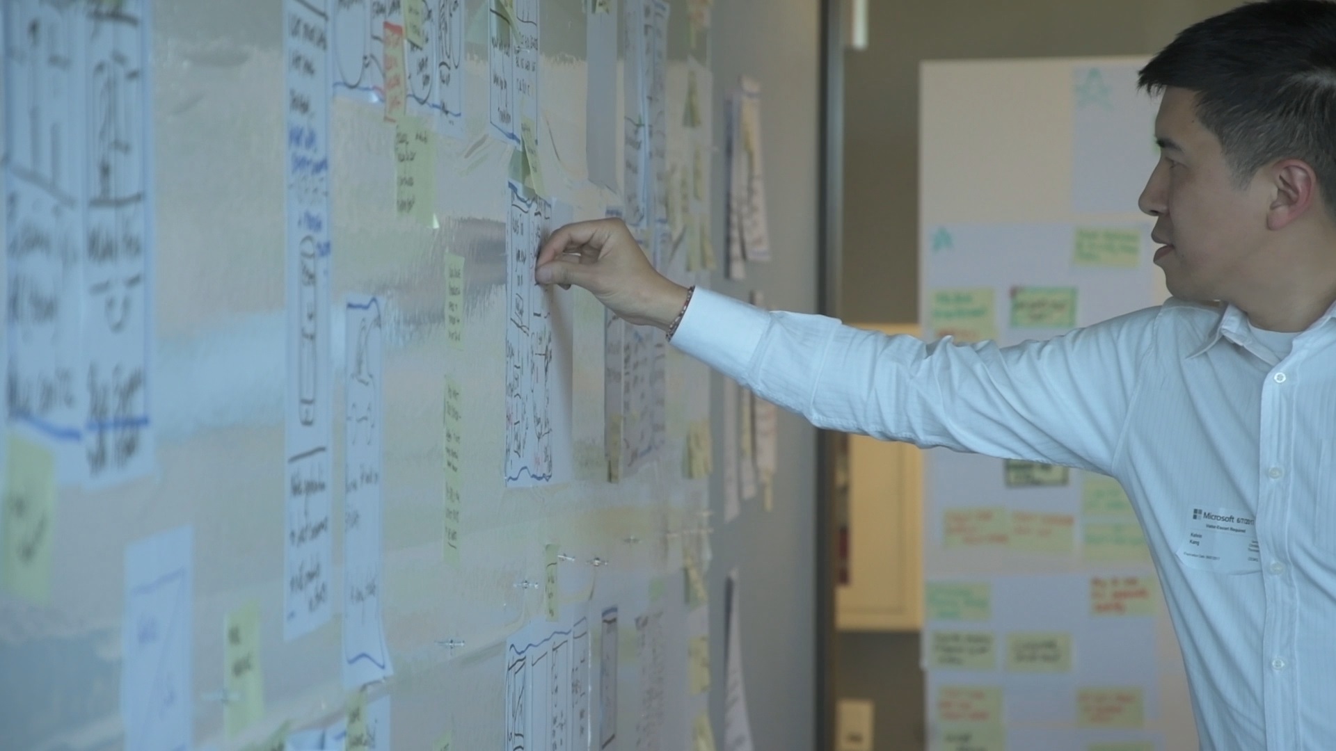 Over two days, the group took over a room in the Windows design team building, specifically chosen for this experience, covering whiteboards, post-its and blank sheets of paper taped throughout the room like wallpaper with their brainstorming. Ideas flew fast and furious as they broke into small groups, created storyboards of customers’ experiences, gave each other feedback and generated promising developments that would evolve into a prototype after they returned to their offices.