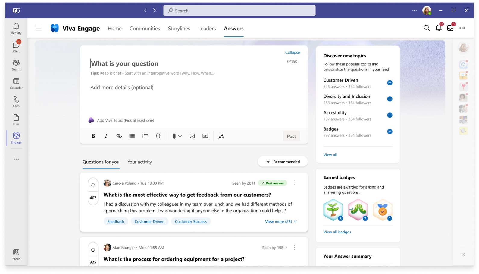 Screenshot shows Answers in Viva
