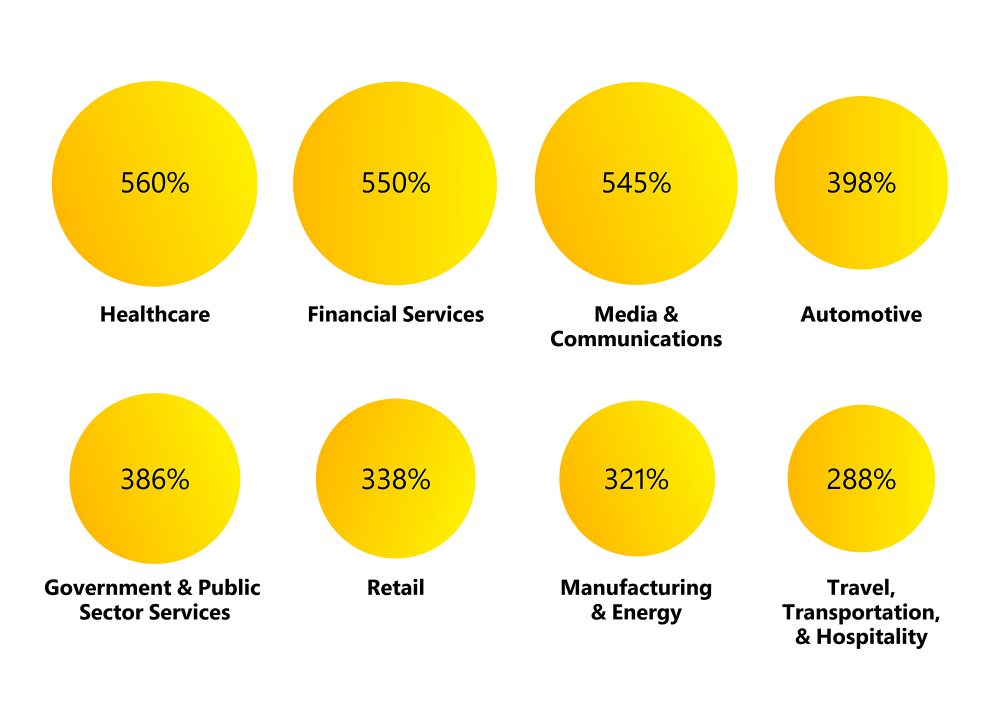 Between March 2020 and November 2021, the monthly use of Microsoft Teams on the frontline grew by 400% in the aggregate, with the most growth in healthcare, financial services and media and communications.