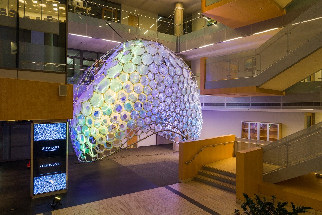 在 2017 年春天举办的华盛顿大学艺术学院筹款活动上,Mira Lane 和 Asta Roseway 与 Jenny Sabin 相识。Jenny Sabin 在西雅图地区长大,毕业于华盛顿大学。当时,她受邀在活动上发表主题演讲,介绍她如何从大自然中汲取灵感,从材料和形状方面进行创新,并于建筑设计中摒弃了生硬的直角。