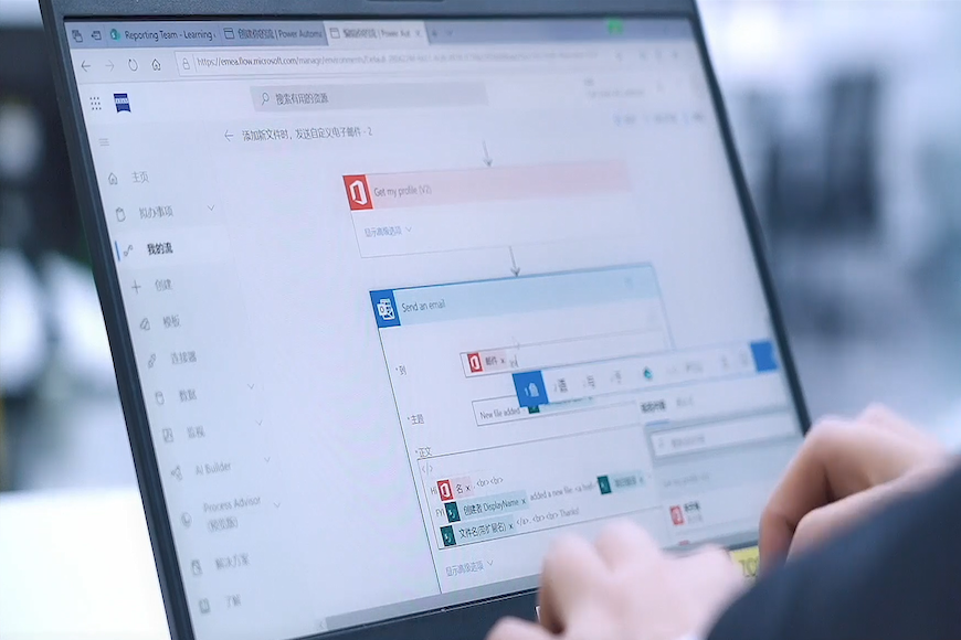 针对传统邮件沟通的工作方式,卡尔蔡司采用了 Power Automate 实现了部门自动发送报告,避免了重复起草电子邮件和手动发送电子邮件的繁琐。通过将以往以邮件形式收集信息的形式转为 Microsoft Forms 调查问卷,对于卡尔蔡司在企业内部的信息和数据收集途径进行了高度统一,从而有效提升了沟通效率。