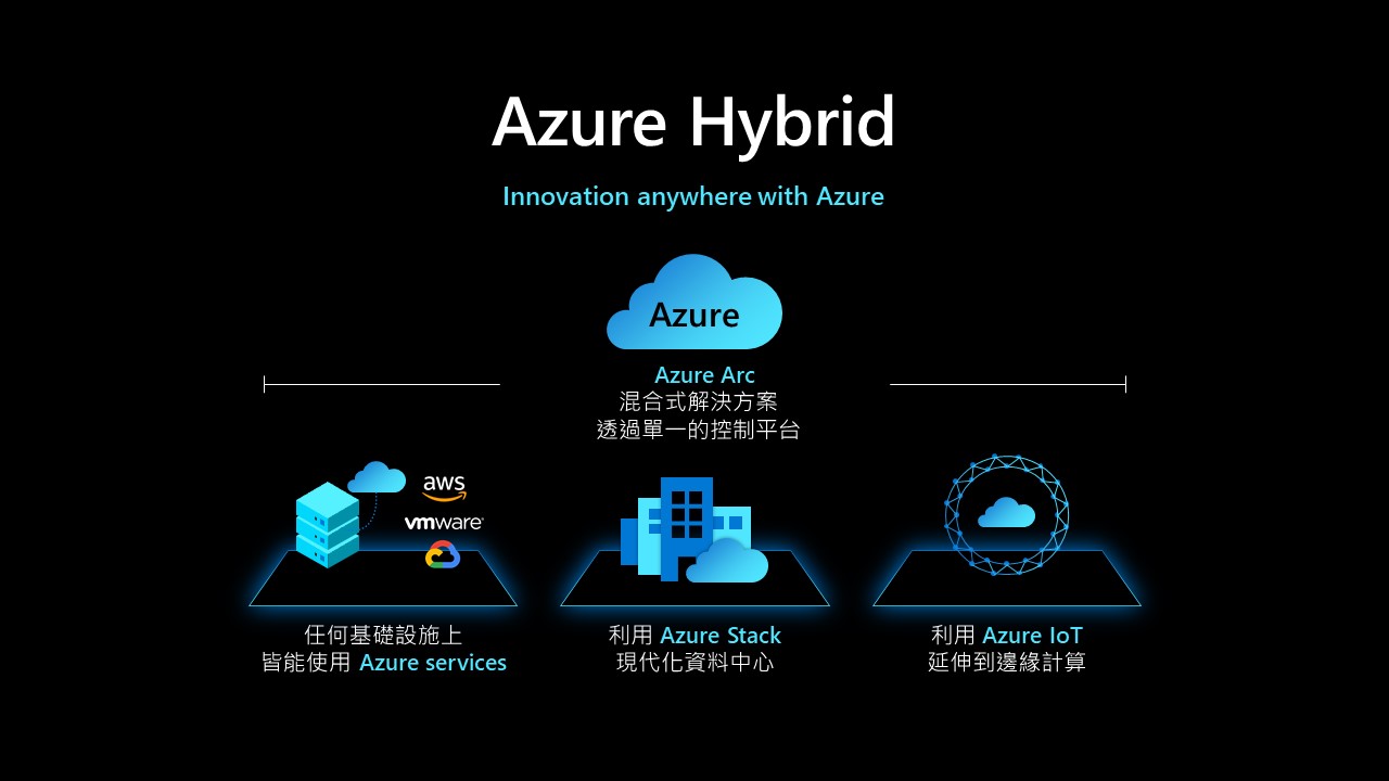 Azure Arc 提供一致的多雲端和內部部署管理平台來簡化治理與管理,將 Azure 管理功能延伸至混合式環境,用戶的工作負載可以橫跨資料中心、混合環境或是邊緣運作,協助管理 Windows 和 Linux 伺服器、SQL Server、Kubernetes 叢集,以及各項 Azure 服務。Azure Arc 讓用戶得以將雲端原生應用程式建構在任意位置、在任何地方執行 Azure 資料服務,並透過單一的入口網站進行集中管理。